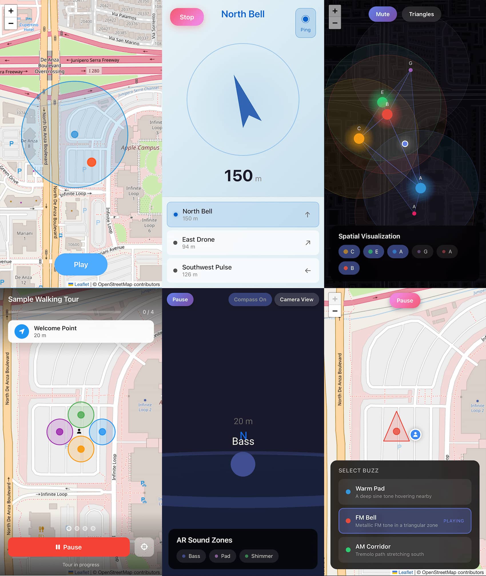Sävellykset (“Buzzit”) viedään itsenäisinä paketteina. Runtime pyörittää sijaintipohjaista ääntä, ja käyttöliittymän voi rakentaa, mukauttaa tai upottaa muualle miten haluaa. Tsekkaa esimerkit.