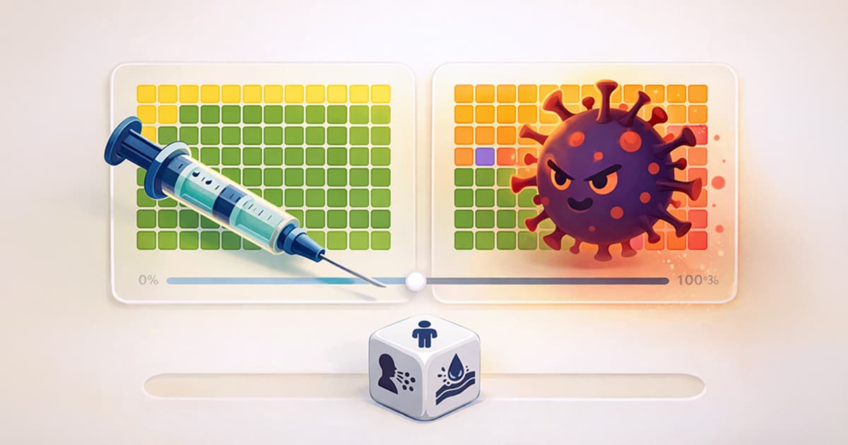 Sovellus käyttää todennäköisyysruudukoita ja yhteistä skenaariomallia, jotta rokotus- ja tartuntariskejä olisi helpompi hahmottaa visuaalisesti. Se on suunniteltu opetukselliseksi vertailutyökaluksi, ei lääketieteelliseksi tai diagnostiseksi sovellukseksi.